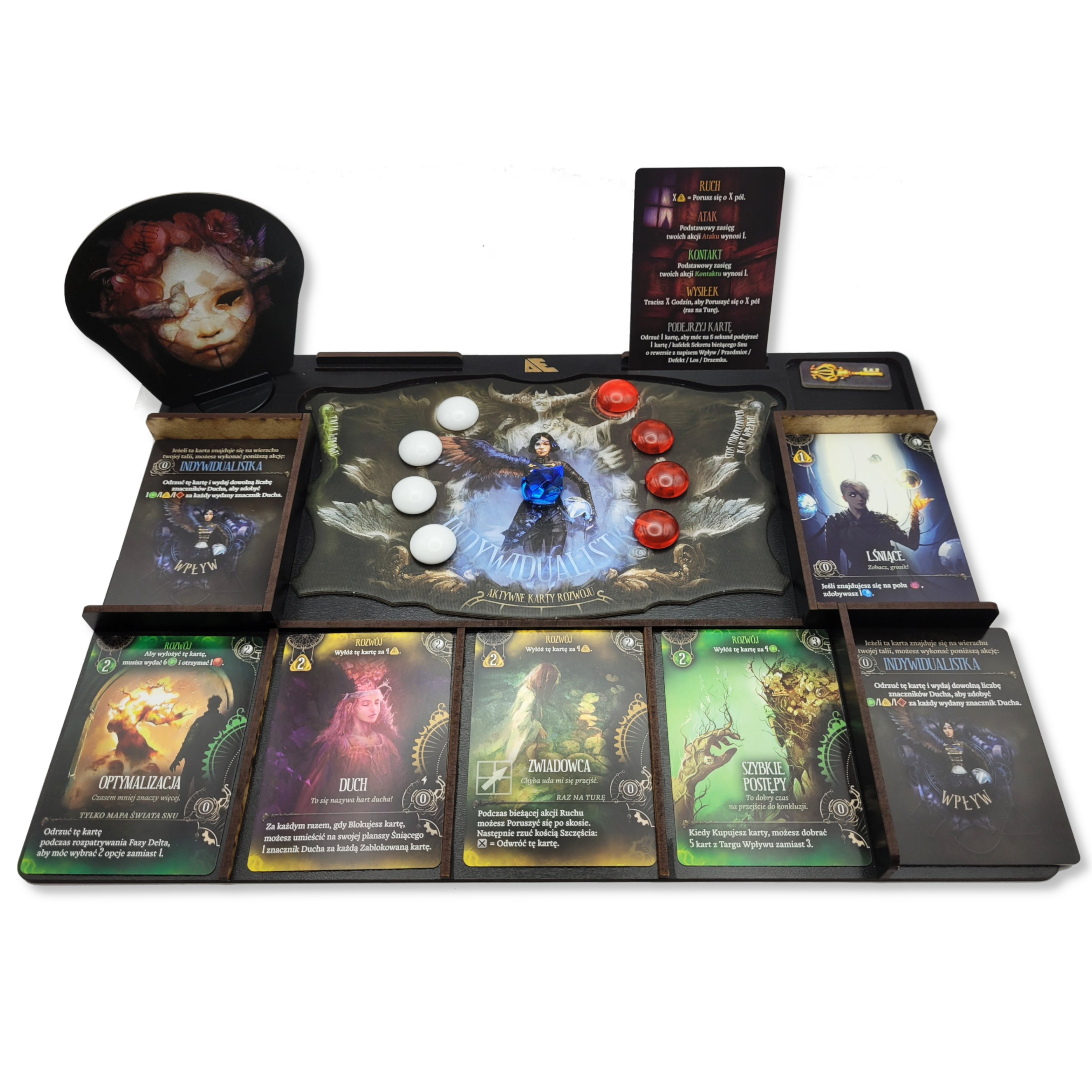 - miejsce na talię wpływów oraz miejsce na stos odrzuconych kart wpływów,