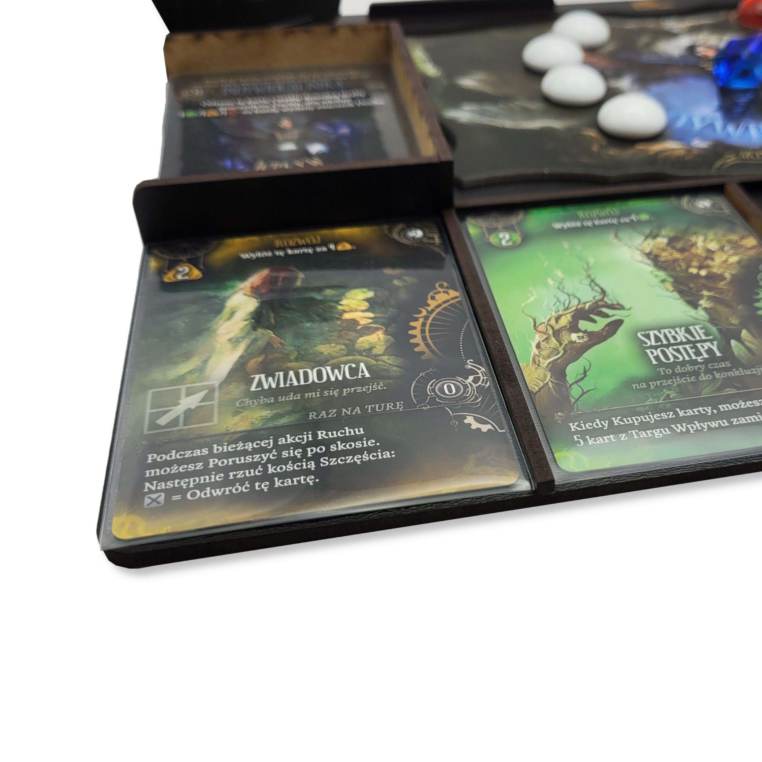 - Wszystko jest tak zaprojektowane, aby pomieściły się karty w koszulkach.